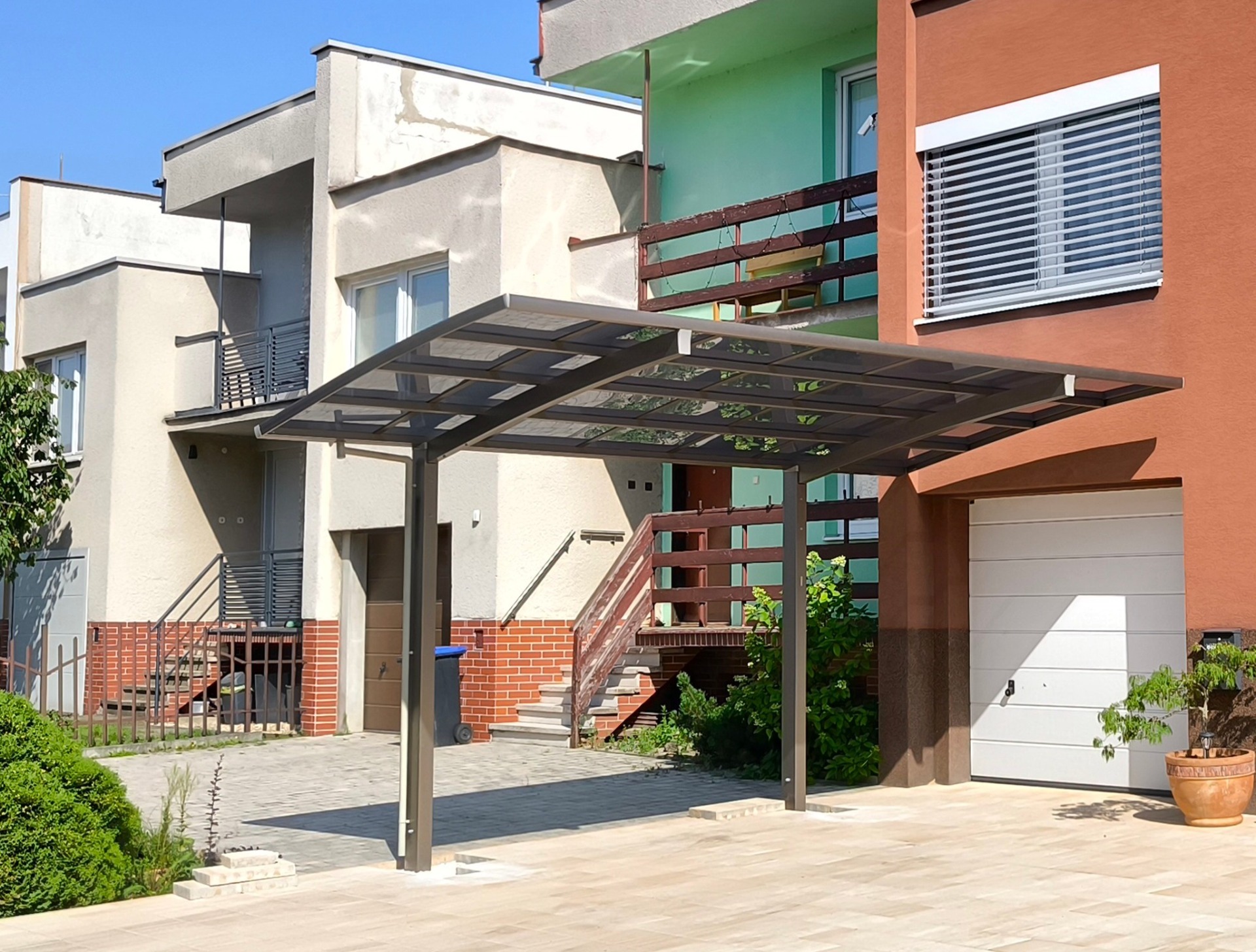 Moderné hliníkové prístrešky pre auto sú k dostaniu v niekoľkých variantoch: pre jedno či dve autá alebo ako radové státie. Vďaka ľahkej montáži sú pripravené na použitie počas pár hodín. Zastrešenie je vyrobené z polykarbonátu, tento materiál je mimoriadne vhodný pre vonkajšie využitie. Zaručuje odolnosť, pevnosť, nelámavost, bezpečnosť, bezúdržbovosť a ochranu pred UV žiarením.